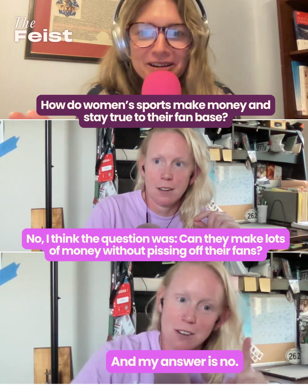 Which gets at one of the fundamental tensions as women's sports grow: Can female athletes and women's leagues make more and more money without alienating their fans? How? At what point does a (historically) socially conscious fan base turn against a (fundamentally) capitalist enterprise? Can that model be built?