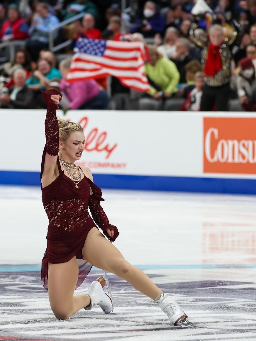 Ultimately, the two went 1-2 — with Glenn becoming the first woman to win three consecutive national titles since Michelle Kwan. She's also the oldest woman, at 26, to represent the U.S. on an Olympic singles figure skating team and the first openly LGBT female skater to do so.